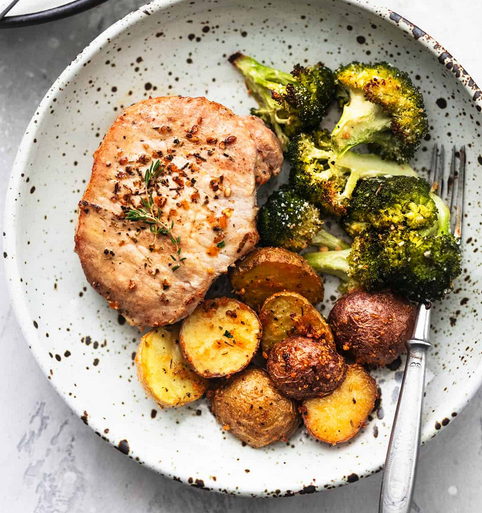 Sheet Pan Pork Chops with Potatoes & Broccoli