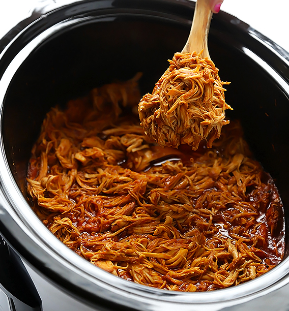 2-Ingredient Slow Cooker BBQ Chicken on Buns