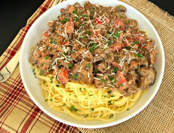 Spaghetti with Creamy Mushrooms & Beef