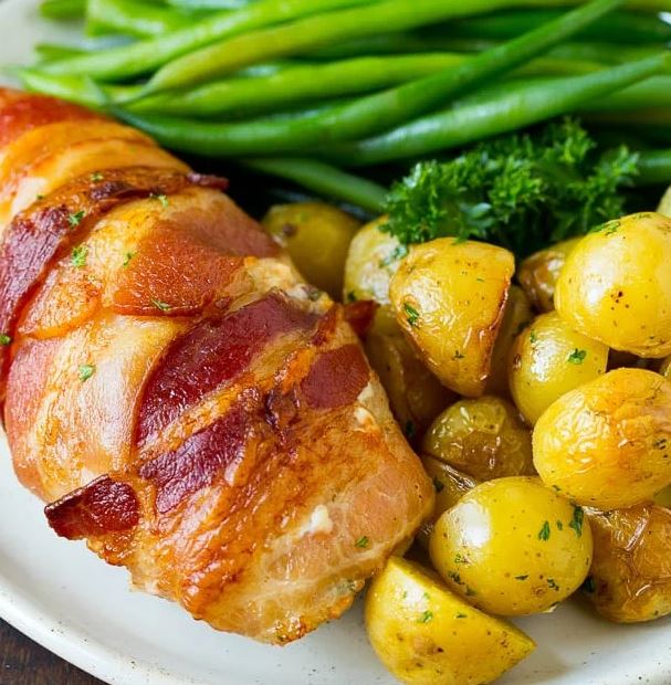 Bacon Wrapped Stuffed Chicken Breast with Potatoes