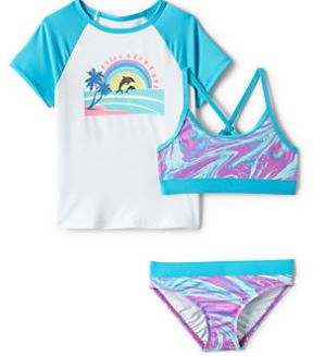 Girls Rash Guard Swim Top, Bikini Top and Bottoms Swimsuit Set $57.95