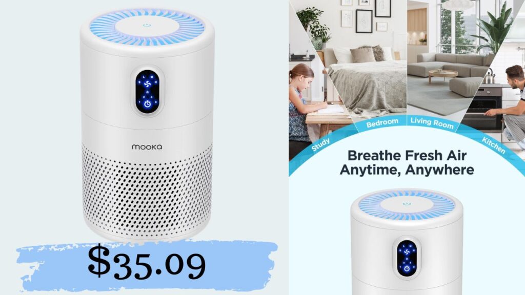 Head to Amazon to grab this Mooka Large Room HEPA Air Purifier for just 35.09 (reg. $170) when you stack two coupons onto a sale price.