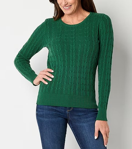 St. John’s Bay Womens Crew Neck Long Sleeve Cable Knit Pullover Sweater – $12.99 (reg. $34)