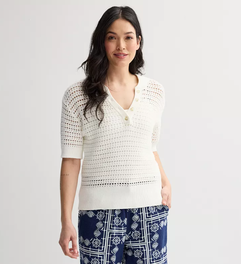 Women’s Sonoma Goods For Life Short Sleeve Henley Sweater – $11.54 (reg. $35)