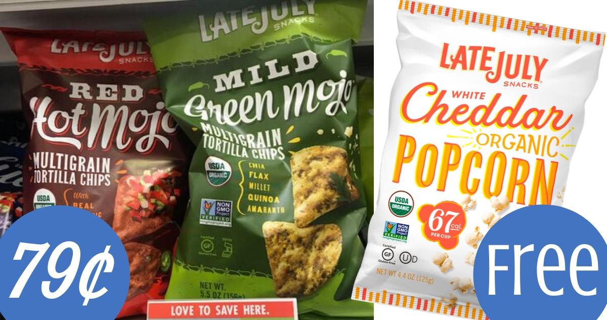 Right now, you can get some great deal on Late July Chips & Popcorn. Grab a bag for FREE at Harris Teeter (with Super Doubles) or 79¢ at Publix!