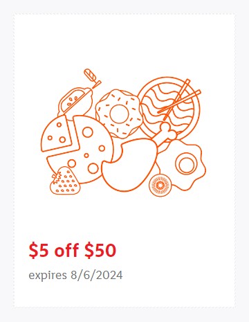 On your next shopping trip of $50+, scan your app bar code at checkout. The $5 will automatically be deducted from your grocery bill.