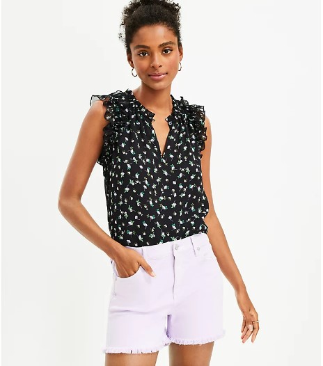 Floral Ruffle Split Neck Shell – $23.99 (reg. $56.95)