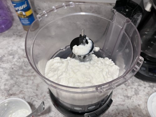 I add some thickness to the cottage cheese by adding a bit of regular shredded cheese. Add the cottage cheese, egg, 1 cup Italian cheese, 1/4 cup Parmesan cheese, salt, garlic powder, and parsley to a food processor and puree.