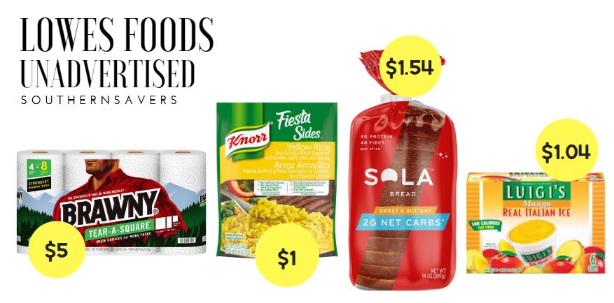 Here are the Lowes Foods unadvertised deals I found this week. Look at your store for $1.54 Sola bread, Brawny paper towels for $5, and more.