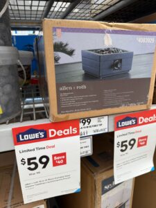 allen + roth 10-in W Black Portable Steel Square Tabletop Liquid propane Fire pit – $59 (reg. $99)