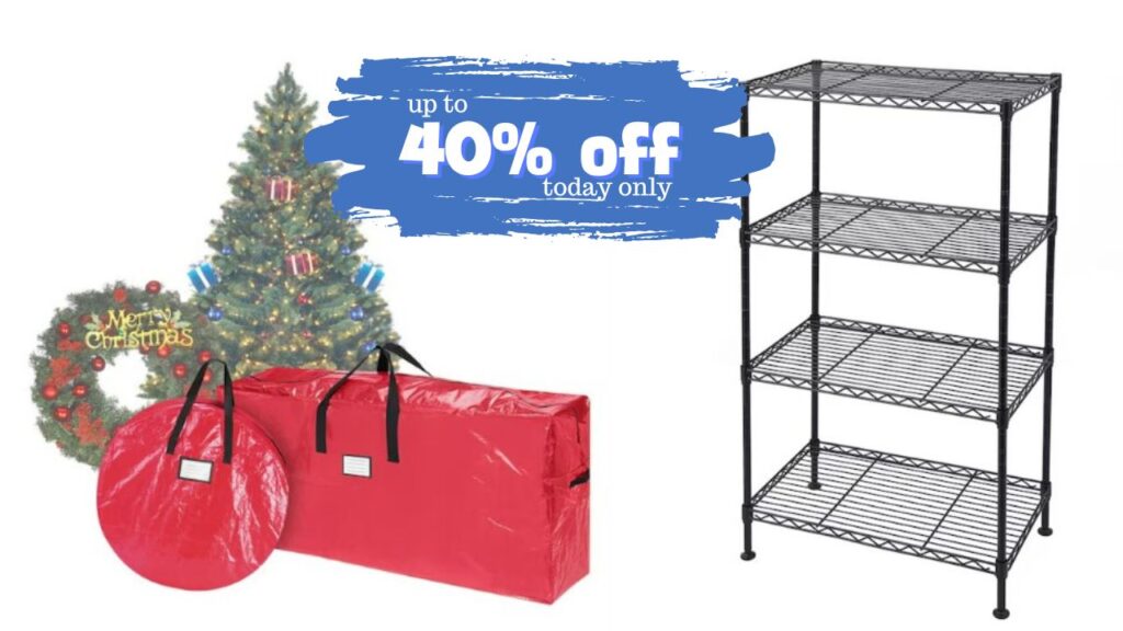 Grab Christmas Tree storage bags and shelving units for the garage for so much less!