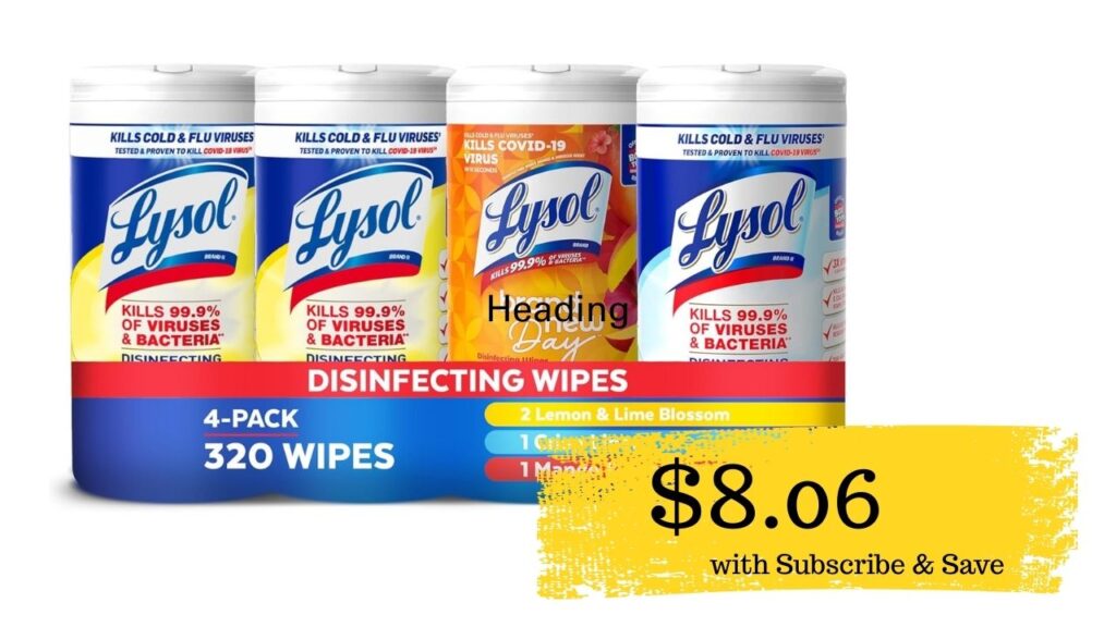 - Lysol Wipes 4-Pack As Low As $8.06 with Subscribe & Save