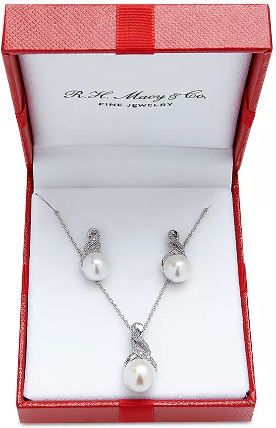 Cultured Freshwater Pearl and Diamond Accent Pendant Necklace and Earrings Set $90.30 (reg. $450)