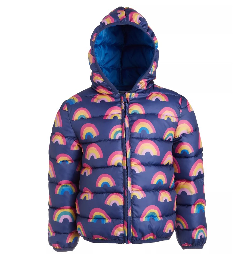 Epic Threads Girls Rainbow Packable Hooded Puffer Jacket – $18.40 (reg. $46)