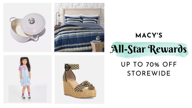Head to Macy’s to score great deals on home essentials, apparel, accessories and more during their Macy’s All-Star Rewards week!