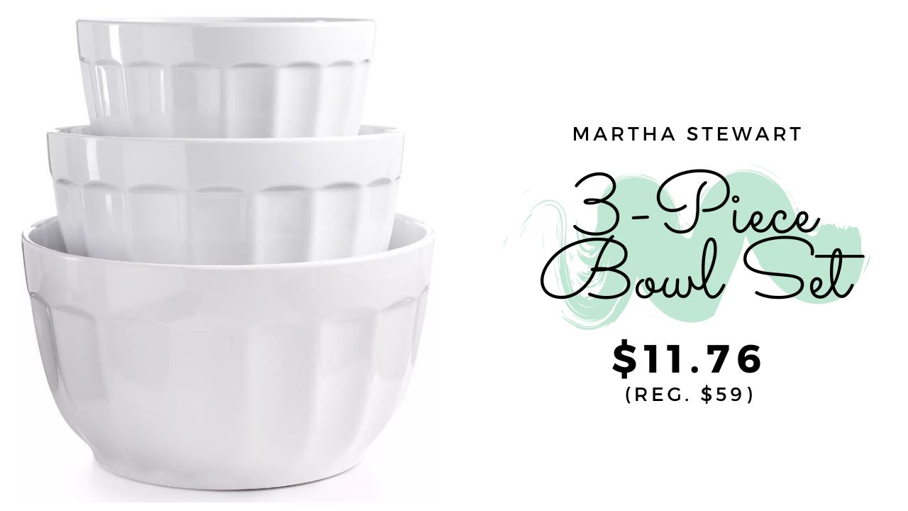 Right now, get a clearance deal at Macy’s on a set of classic bowls! Score this 3-piece Martha Stewart fluted bowls for just $11.76, regularly $59!