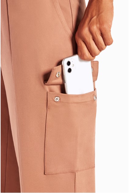 These wide-leg lounge pants are cool and comfortable with a moisture-wicking finish, an elasticized waistband, and plenty of pocket space. The cargo side pockets with snap button flaps are big enough to hold your phone.