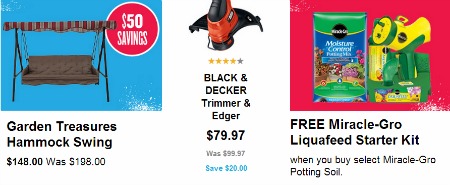 Right now there are plenty of deals on patio furniture, plants, potting soil, and even outdoor power equipment. Here are some examples from Lowe’s right now:
