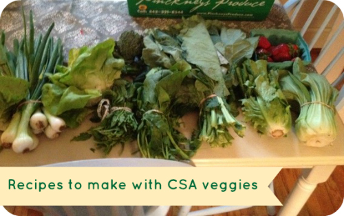 Have any of you started trying new CSA recipes this year? We love picking up our CSA box brimming with fresh local produce each week. Sometimes it means getting creative with less familiar veggies and lots of salads… but that’s a good thing!