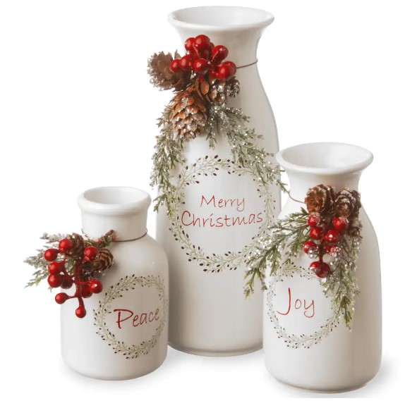 Antique Holiday Ceramic Milk Bottles Set, 3 Pack – $31.99 (reg. $92.99)