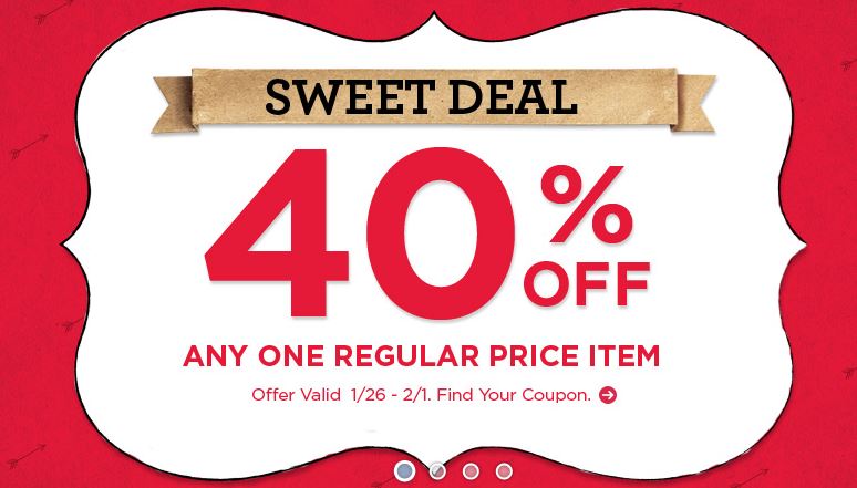 Michael’s- 40% Off any (1) Regular Priced Item (exp 2/1)