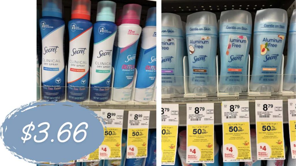 Head in to CVS this week for a big savings on deodorant. Grab two Secret Deodorants and use an eCoupon, and you’ll score deodorant for just 99¢ after ExtraCare Bucks!
