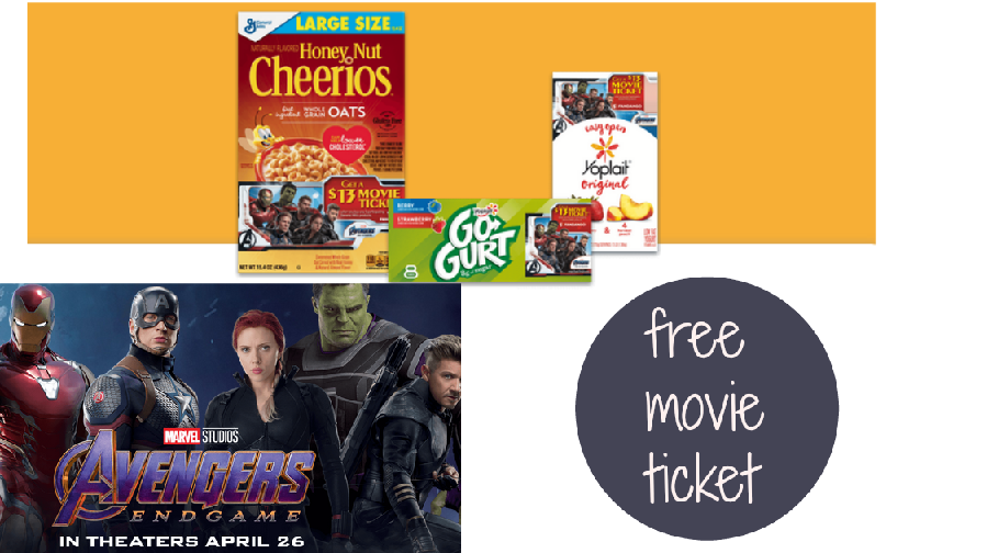 Head to Walmart where you can get a movie ticket for free, a $13 value. General Mills is offering shoppers a free movie ticket with purchase of three packages of General Mills products, including cereal, Go-Gurt and Yoplait products.