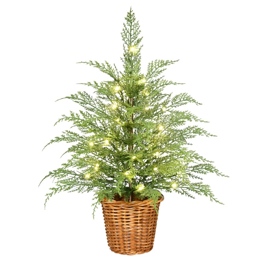 24″ Pre-Lit Green Cypress Artificial Christmas Tree – $32.87