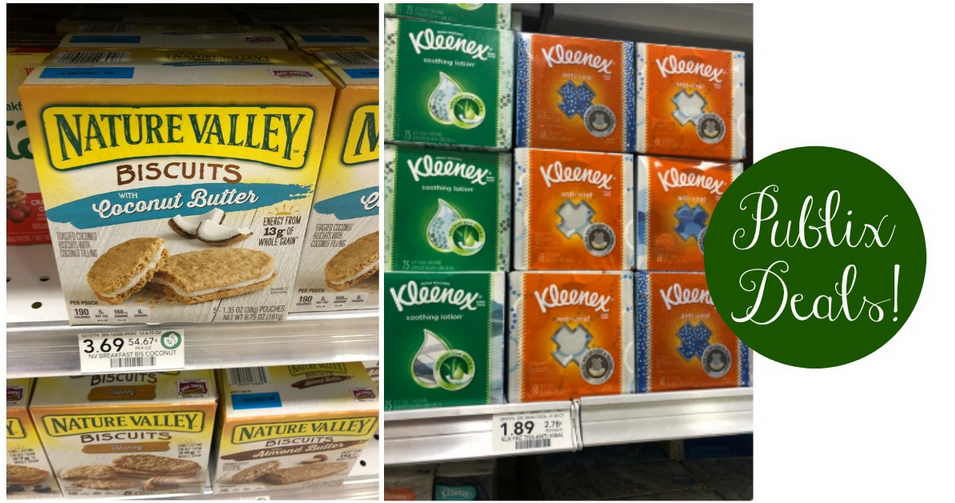 Here are two fun deals to grab at Publix this week. Get Kleenex tissues for 80¢ plus Nature Valley Biscuits for $1.09.