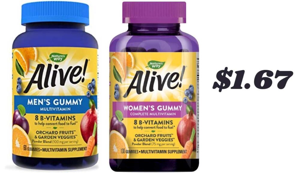 - Walmart – Nature’s Way Alive! Men’s or Women’s Multivitamin Gummies, 60 ct, $8.92