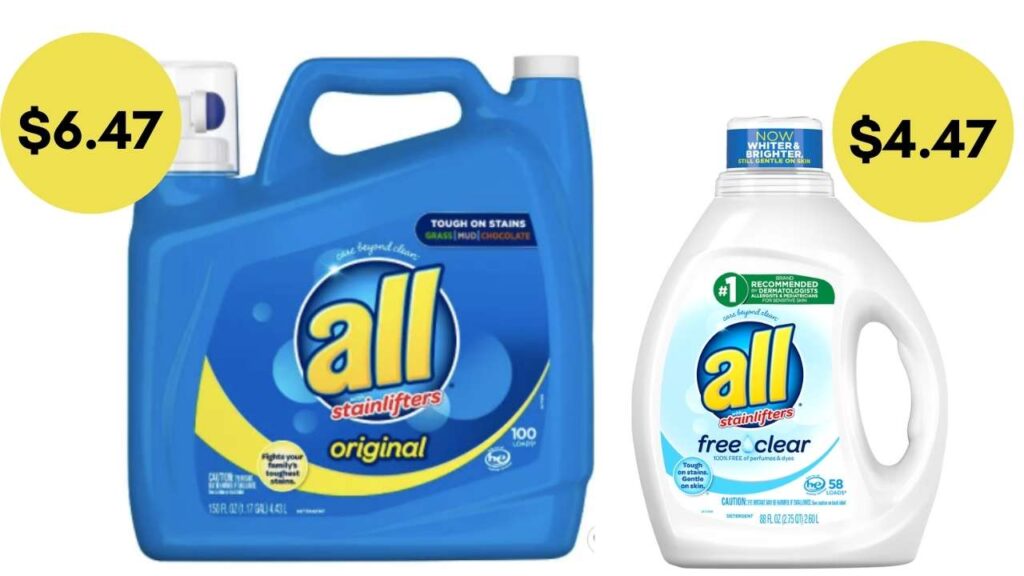 (makes it $6.47) - All Free & Clear Detergent, 88 oz, $6.97