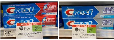 - Crest Tooothpaste, 8.2 oz, B1G1 at $2.87 ($1.43)