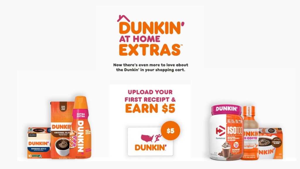The new Dunkin’ At Home Extras program allows you to earn points for Dunkin’ purchases made at major retail stores and redeem them for Dunkin’ gift cards.