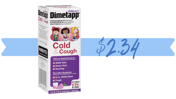 (use Cartwheel and $2 off, makes it $2.37) - Dimetapp Children’s Grape Syrup, 4 oz, $5.79