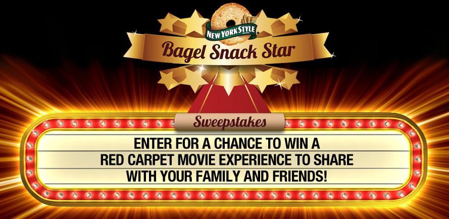 If you want a chance to get a little pampered and become a “Snack Star”, head over to the NYS Facebook page to enter the Bagel Snack Star Sweepstakes. One grand prize winner will get to share a red carpet evening with 50 friends and family when NYS rents out a local movie theater just for you!