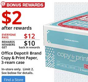 Home > Household Deals > Office Depot Rewards | 66¢ Copy Paper