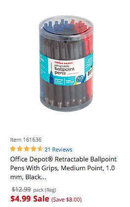 Office Depot Ball Point Pens, 50 ct., $4.99