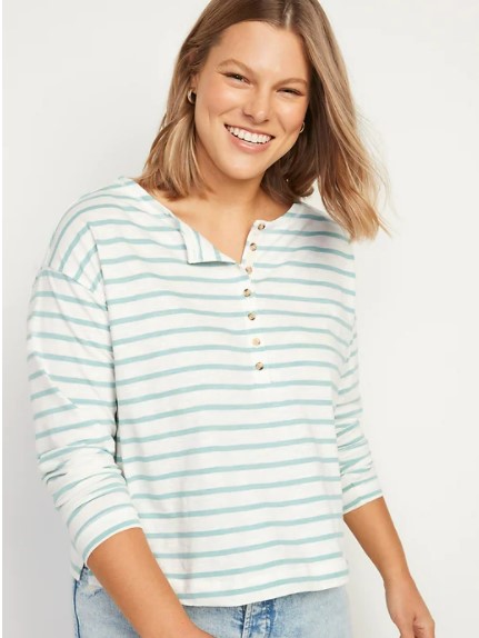 Loose Mariner-Stripe Long-Sleeve Henley T-Shirt – $10 (reg. $29.99)