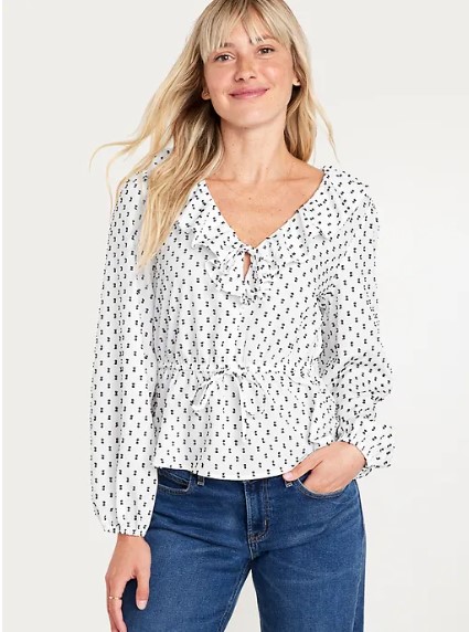 Waist-Defined Ruffle-Trim Clip-Dot Top for Women – $16.97 (reg. $40)
