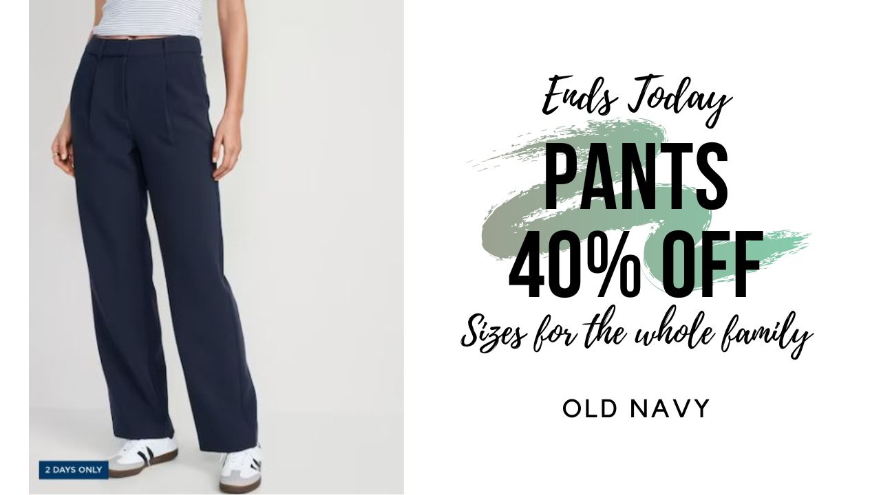 Through today only, you can save 40% on pants at Old Navy. Grab pants for the whole family – women, men, boys and girls!!
