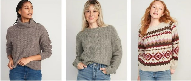Today only, Old Navy is offering 50% off Sweaters for women. You’ll also find some sweet clearance deals for men’s sweaters that are even more than 50% off!
