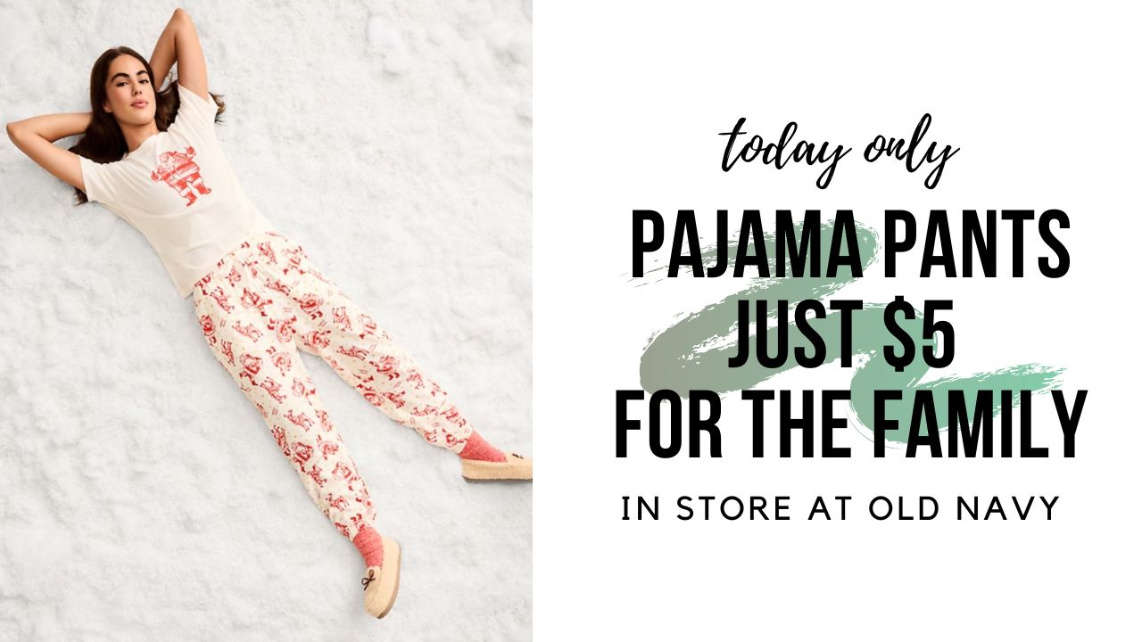 Today only, grab some fun pajama deals at Old Navy! They have pajamas pants for just $5 – regularly $25!