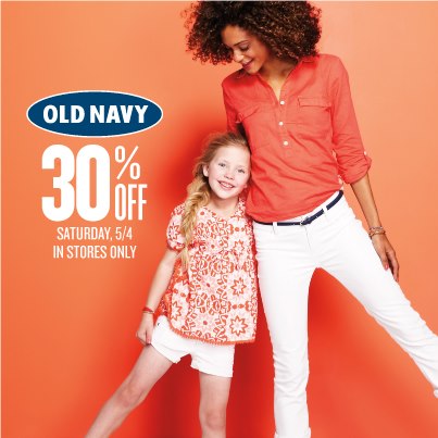 Home > Local Store Coupons > Old Navy Sale: 30% off Entire Store, 5/4 Only