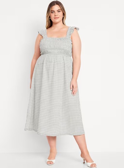 Fit & Flare Smocked Gingham Midi Dress – $22.49 (reg. $45)