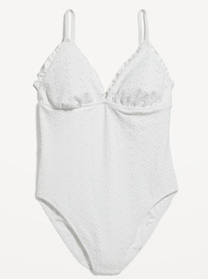 Eyelet-Embroidered V-Neck Ruffle-Trimmed One-Piece Swimsuit – $12.97 (reg. $50)