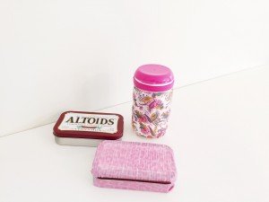 I saved some Altoids and gum containers and left it up to my girls to decorate them. We used patterned Duck Tape to wrap the boxes to make it a little more fun.