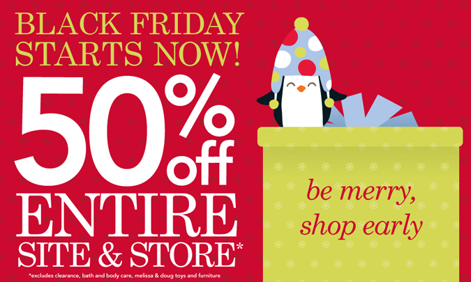 Get busy shopping on Carter’s! Save 50% site wide and in stores, and receive free shipping on all Carter’s and Osh Kosh B’Gosh orders of $50 or more, no coupon required (excludes clearance, bath and body care, Melissa and Doug toys and furniture).