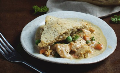 This is our one new recipe this week. I made a few traditional pot pies this weekend for some friends and the entire time I wanted to sit down and eat it myself. I am a comfort food junkie…