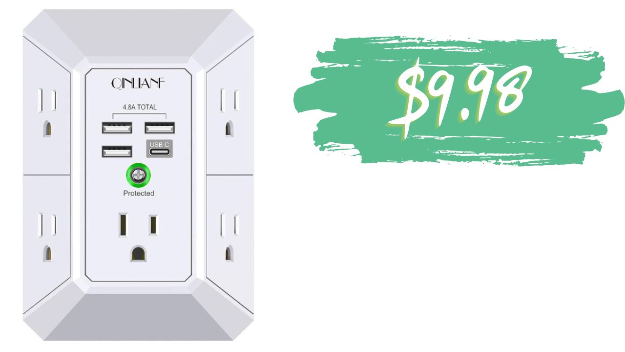 Right now on Amazon, score 50% off this outlet extender with 4 USB charging ports. Get the extender for just $9.98, regularly $19.98.