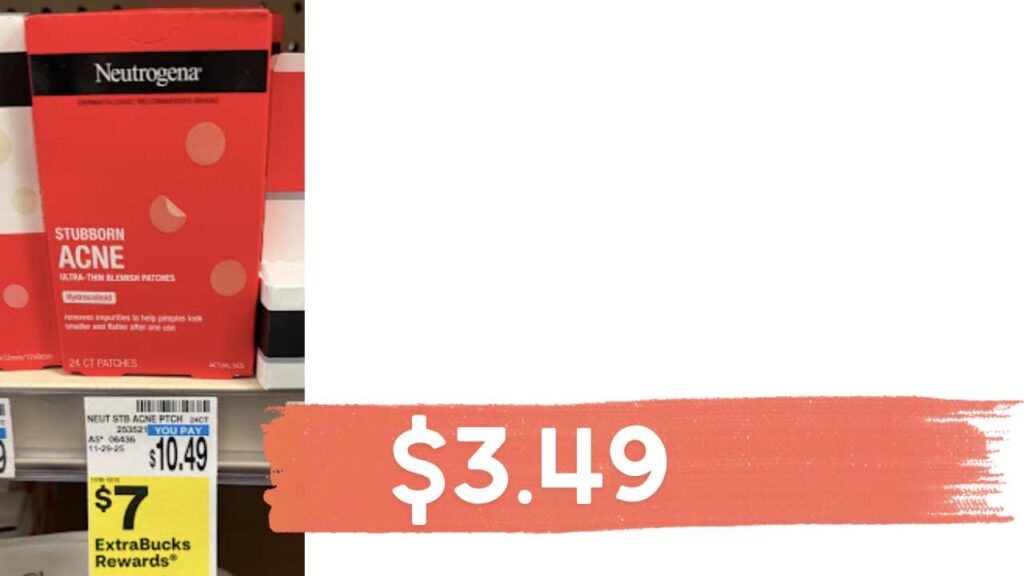 Say no to acne with $3.49 Neutrogena Stubborn Acne Blemish Patches at CVS, thanks to coupons and a $7 ExtraCare Bucks offer.